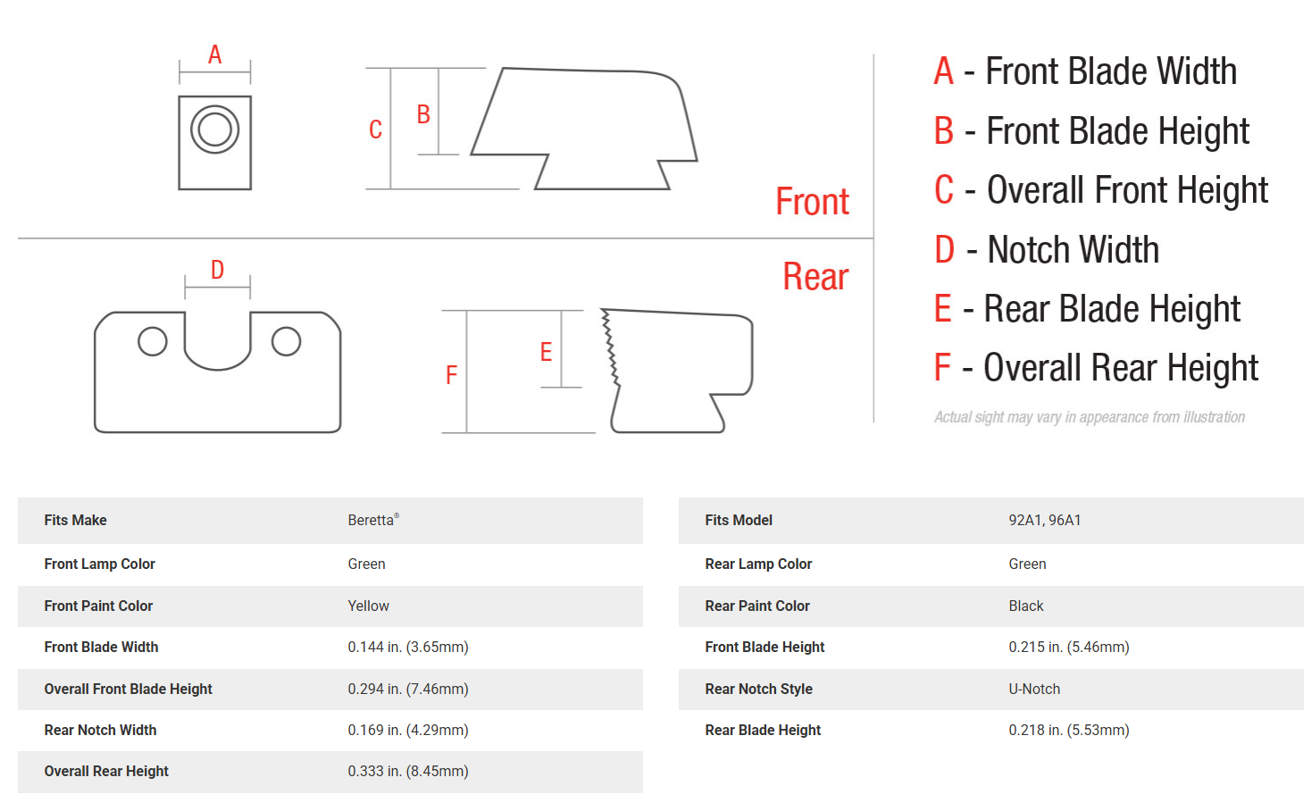 Fits Beretta 92/96A1 Models